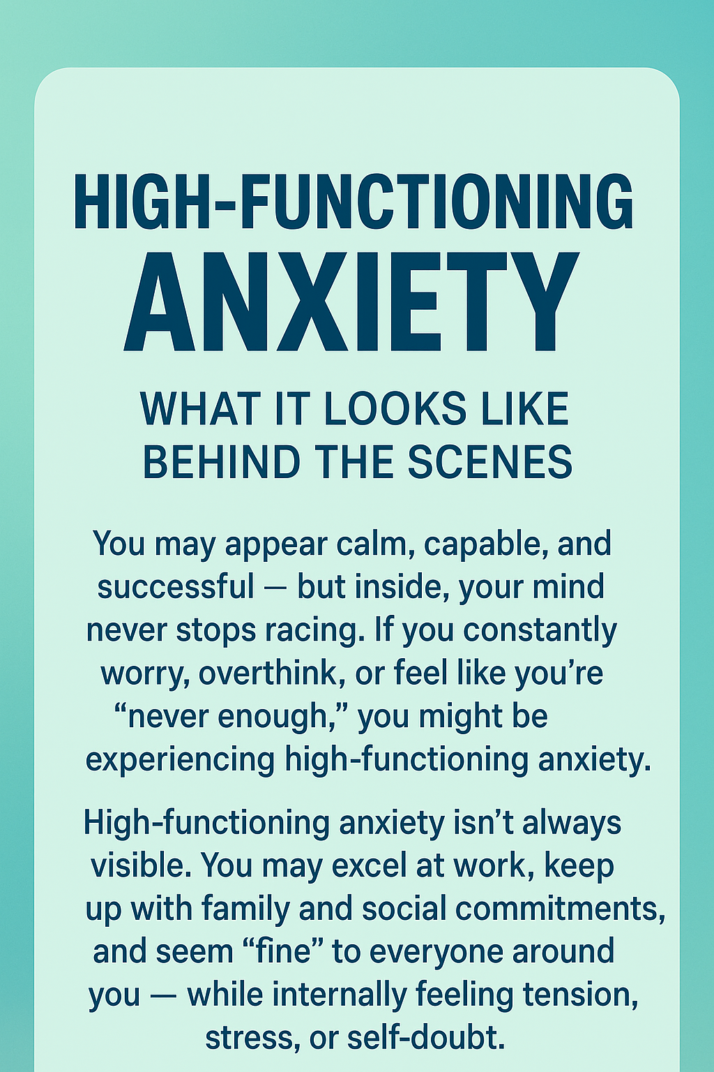 High-Functioning Anxiety: What It Looks Like Behind the Scenes